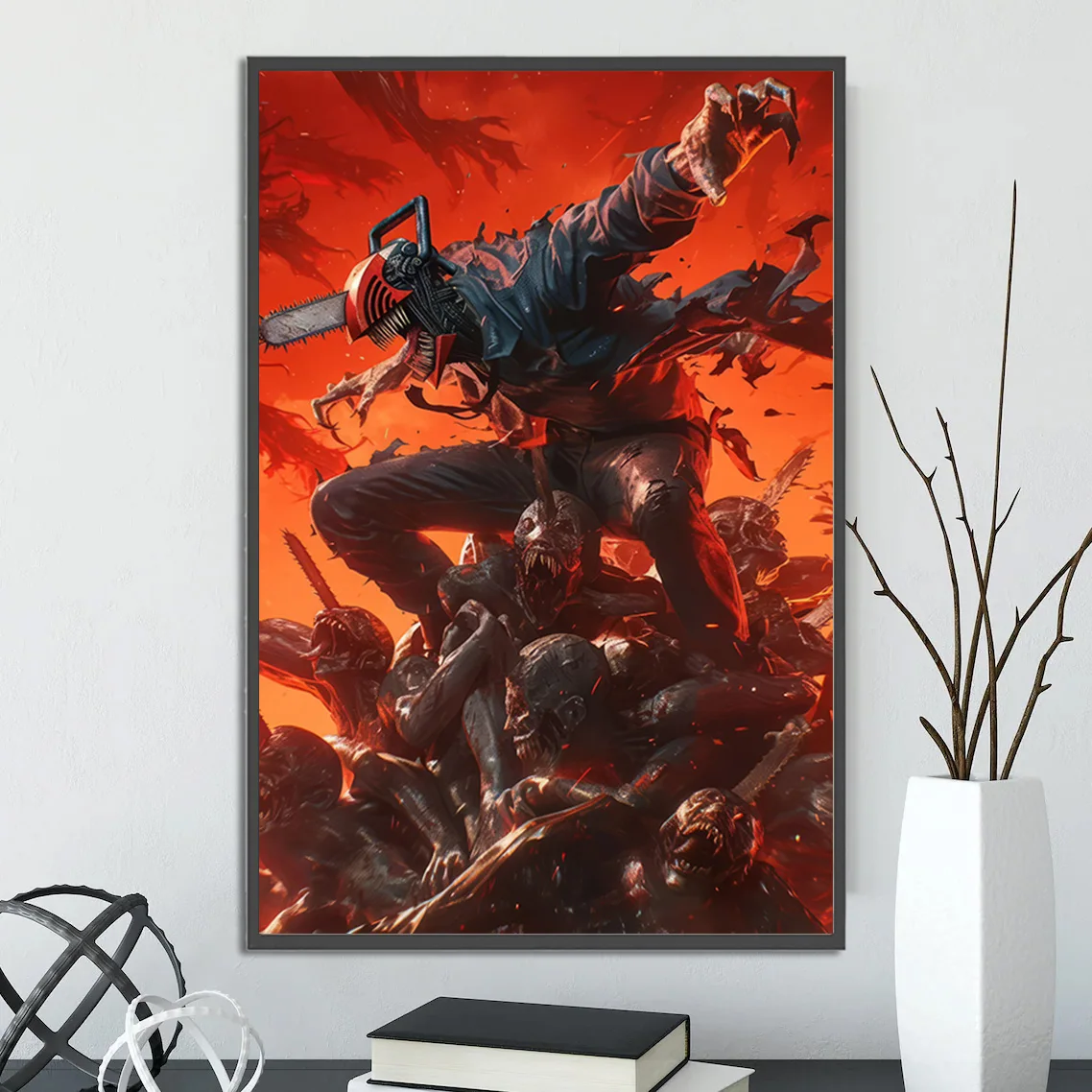 Have you ever asked yourself, what is Chainsaw Man about? It’s about grit, gore, and the surprisingly heartfelt bond between a boy and his devil dog. This stunning piece of wall art captures the very essence of that chaotic world, bringing the raw, untamed energy of the Chainsaw Man anime and Chainsaw Man manga directly to your walls. Whether you’re a long-time fan who devoured the manga from the beginning or someone who got hooked by the electrifying anime adaptation, this print is the ultimate tribute to a story that has redefined the shonen genre. It’s more than just a poster; it’s a piece of the phenomenon, a snapshot of the brutal beauty that has captivated millions worldwide and sparked a massive community of Chainsaw Man fanart and Chainsaw Man cosplay.