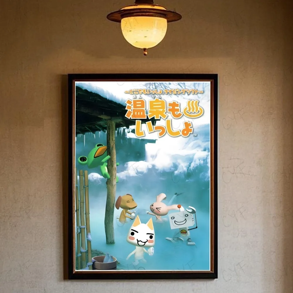 Doko Demo Issyo: Onsen mo Issho ft. Toro Inoue | Classic PSP Video Game Poster & Wall Art Print | Sony Cat Retro Gaming Decor
