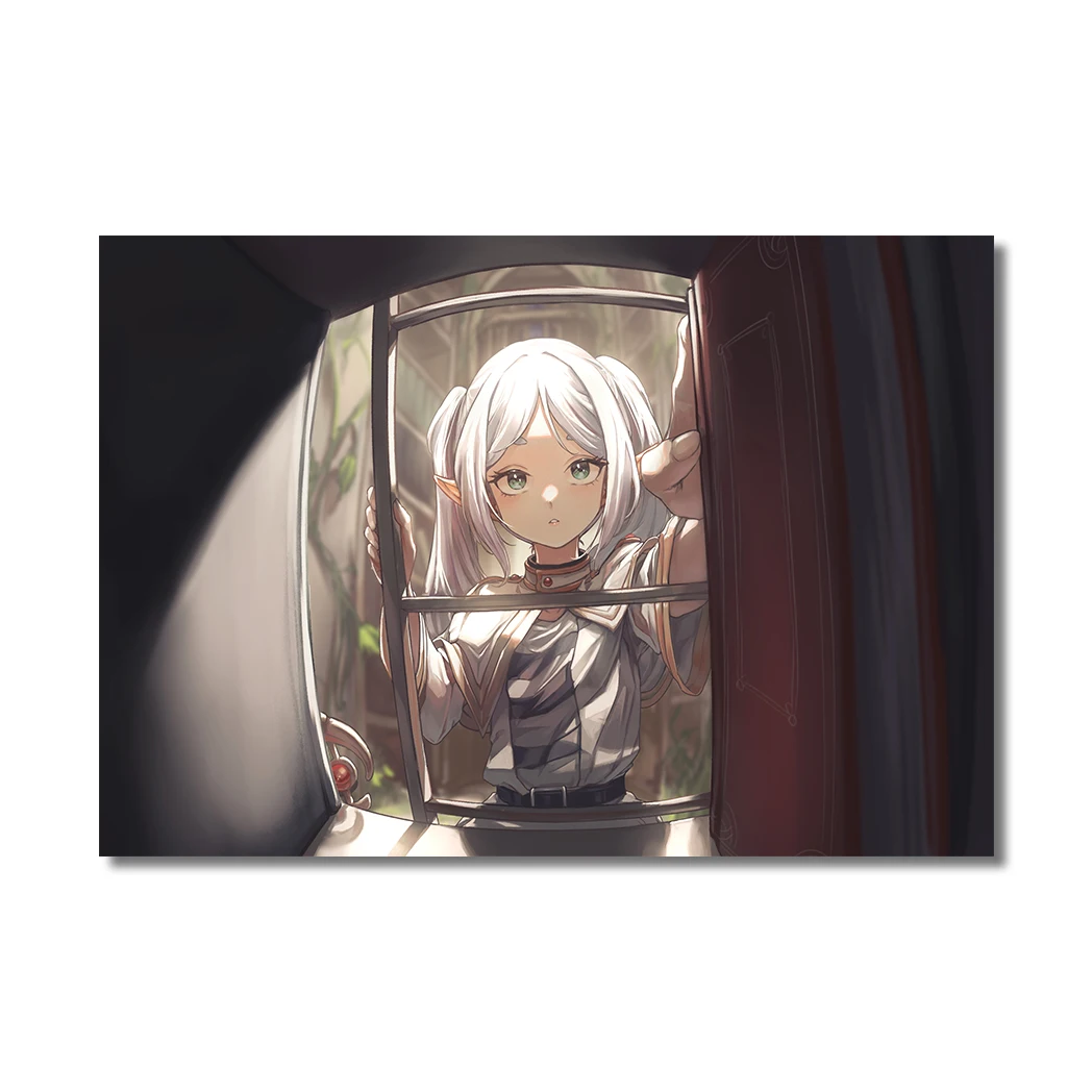 This piece of art beautifully portrays Frieren in a moment of quiet introspection, gazing through a window as if peering into her vast past or contemplating the future. The artist has masterfully captured her ethereal elven features and the subtle melancholy in her eyes, a hallmark of her character. The soft, ambient lighting creates a tranquil mood, drawing you into the scene and making you ponder the centuries she has witnessed. The intricate details in her attire and the delicate rendering of her hair reflect the high-quality animation and art style of the Frieren anime. It’s a visual representation of the complex Frieren magic explained not through explosive spells, but through the quiet, immense power she holds. This artwork encapsulates the soul of Sousou no Frieren, making it a must-have for any collector or admirer of the series.