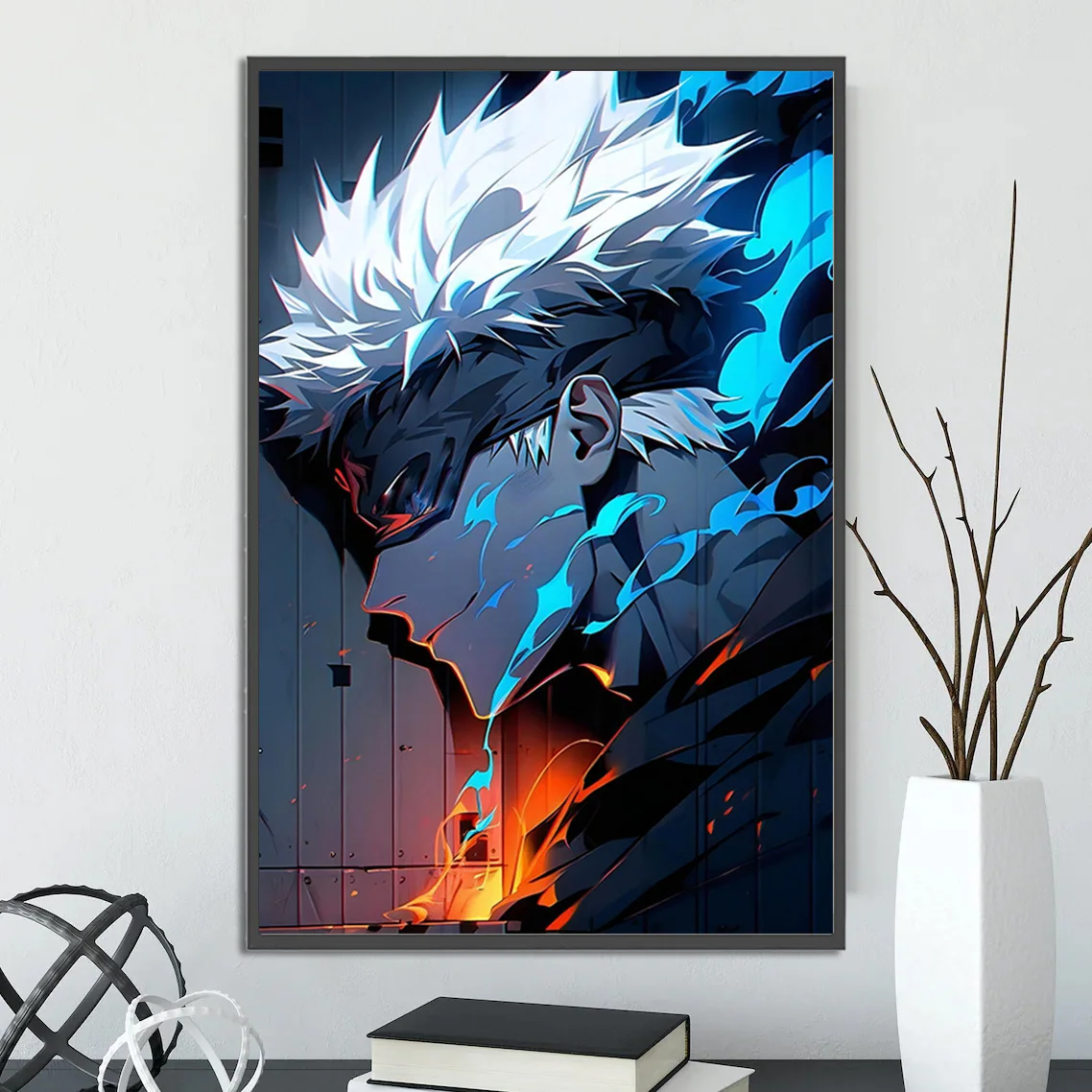 This stunning print brings Satoru Gojo to life with electrifying detail. The artwork focuses on Gojo’s intense profile, his signature white hair rendered with sharp, dynamic lines that seem to crackle with energy. A brilliant, ethereal blue flame, representing his immense Cursed Energy explained through visual form, envelops him, contrasting starkly with the fiery orange glow emanating from below. This duality of color highlights the immense, often terrifying, power he wields with such effortless confidence. The artist has perfectly captured the cool, collected demeanor that masks a sorcerer of unimaginable strength. Every brushstroke conveys motion and power, making it feel as though Gojo is about to unleash his Domain Expansion. This piece isn’t just a depiction; it’s an experience, a snapshot of the raw power that makes Gojo one of the most iconic figures in modern anime.
