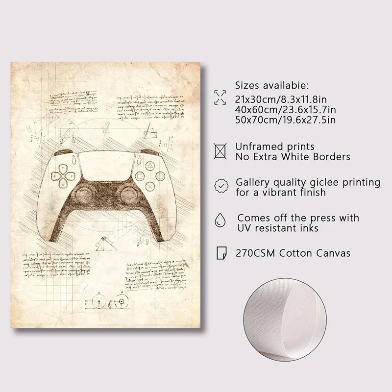 PlayStation 5 Controller Blueprint Wall Art | Da Vinci Style DualSense Gaming Print | PS5 Wall Decor